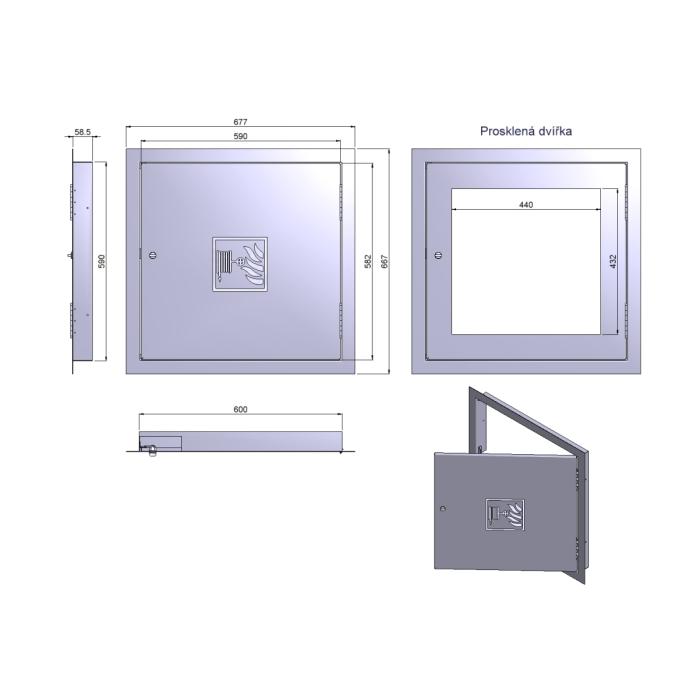 - Skriňa hydrantu - vyrobená z oceľového plechu. Stredom bubna je privedená tlaková voda, ktorá umožňuje okamžité použitie systému. Povrchová úprava - prášková štrukturálna farba určená pre vnútorné prostredie (po dohode s výrobcom možno dodať aj pre vonkajšie prostredie). Prevedenie s plnými dvierkami dvierkami.
