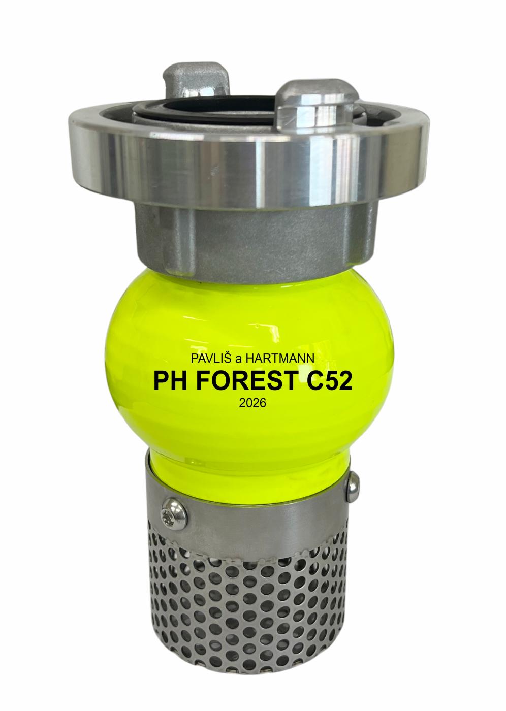 Sací kôš PH Forest C52 s klapkou je možné použiť pre odstredivé čerpadlá s maximálnym priemerom sacieho potrubia C52. Je určený predovšetkým pre čerpadlá Forestguard 6. Vďaka svojej konštrukcii zaručuje ich bezproblémovú prevádzku, prietokové parametre a zabraňuje nasatiu hrubých nečistôt väčších ako 4,5 mm. Kôš má valcovitý tvar a na výstupe je vybavený 2-palcovým závitom, na ktorý je naskrutkovaná spojka C52. Otvory na nasávanie vody sa nachádzajú po bokoch a na dne koša a majú priemer 4,5 mm. Tým sa zabraňuje priamemu nasávaniu nečistôt zo dna vodného zdroja.